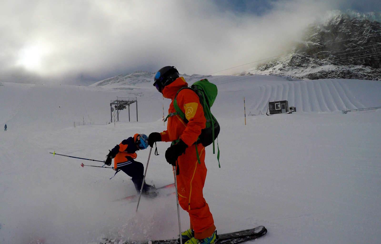 Arrivés sur place, nous retrouvons quelques amis, récupérons nos abonnements de saison. Dès lors, plus rien ne peut nous arrêter! Départ imminent du métro alpin pour se retrouver à 3500m les skis aux pieds…