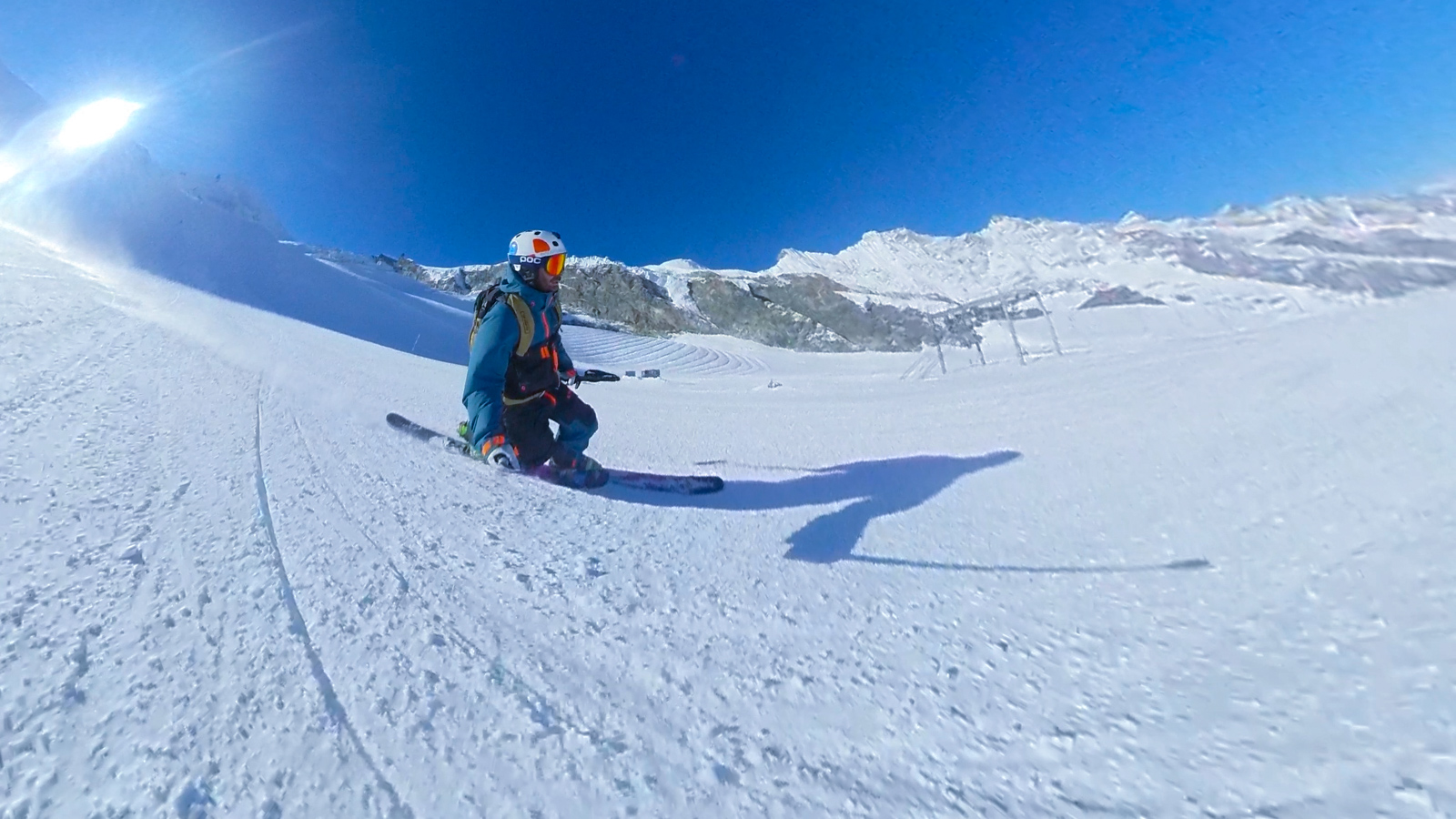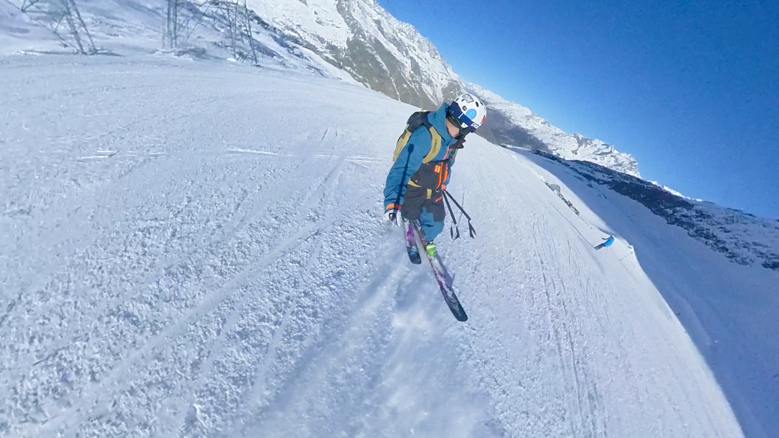 Le dernier jour, quelques virages dans la poudre, quelques tests de notre nouveau matériel de tournage (une caméra 360°, la Insta360), en passant par quelques conseils pour les débutants qui se sont joints à nous pour cette ouverture de saison.