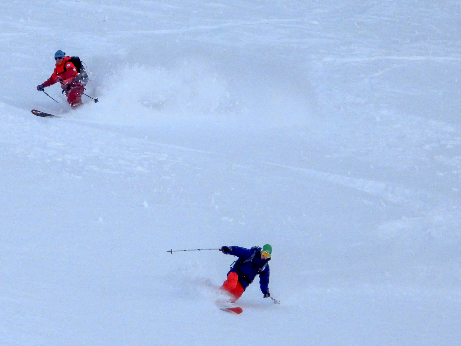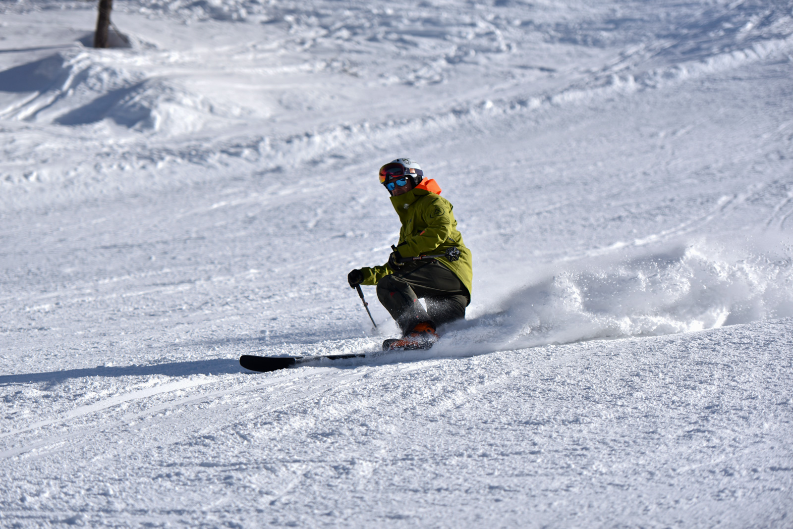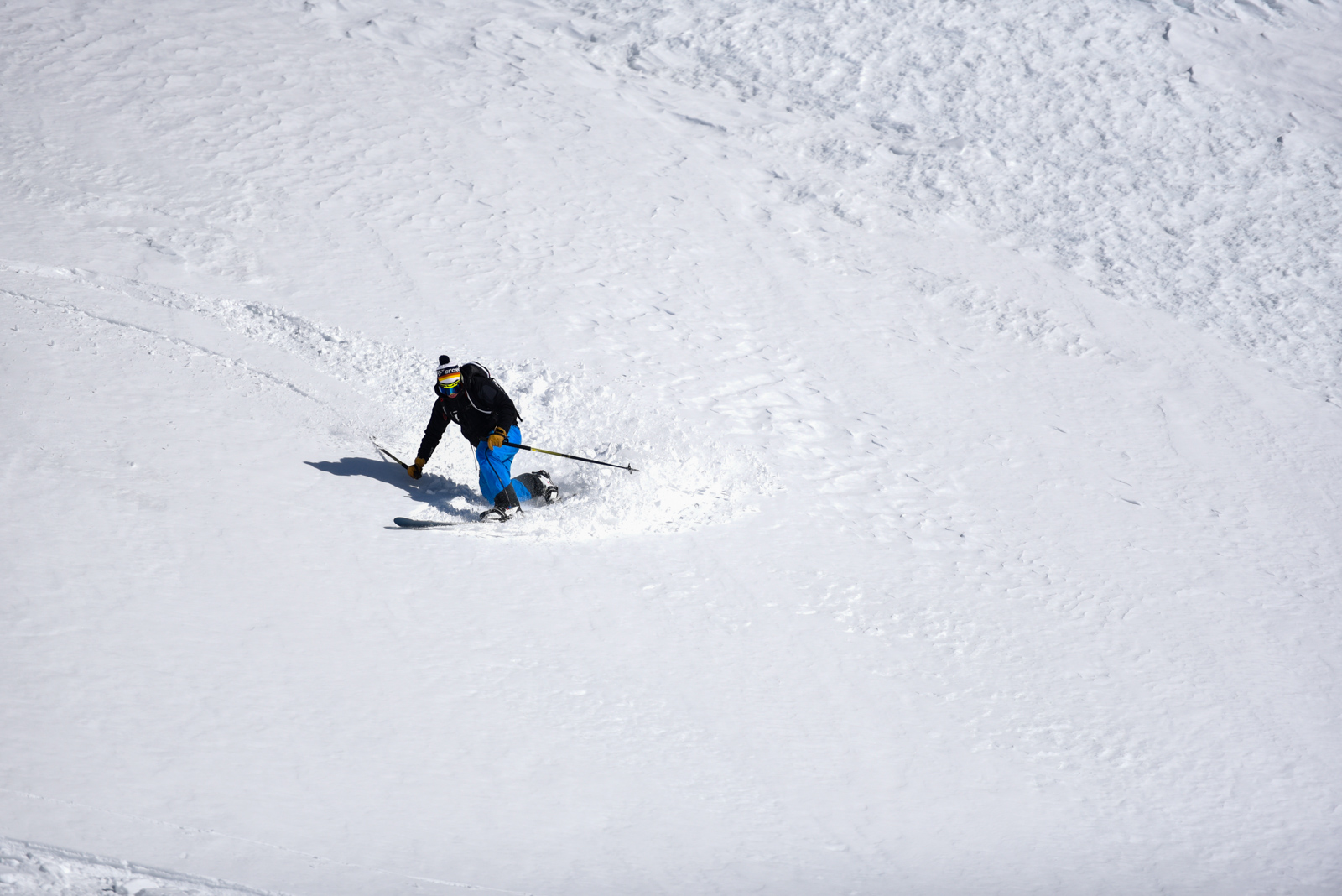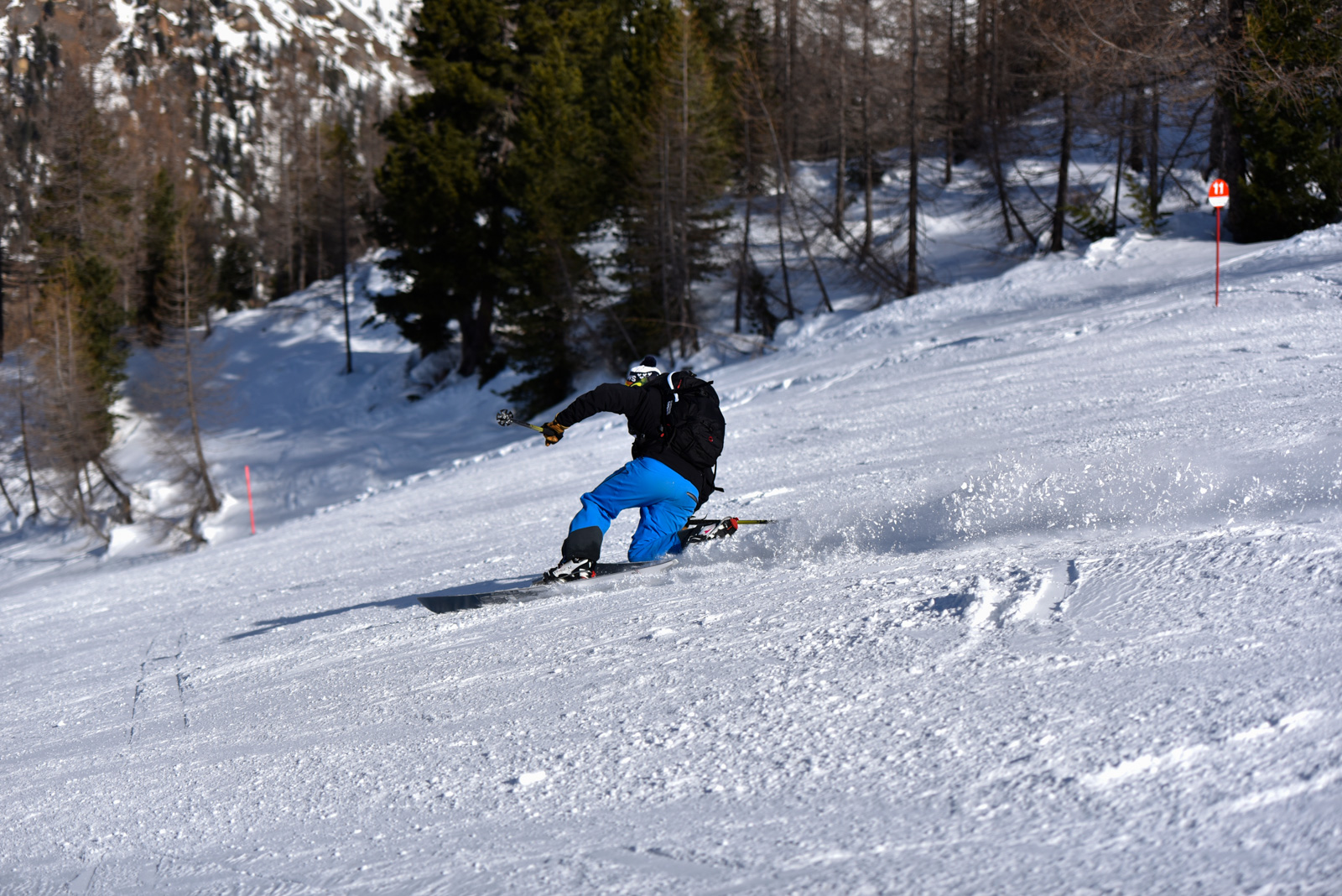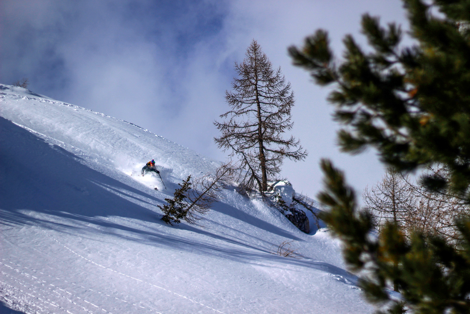 Samedi, dernière journée de ski dans les Dolomites, nous partons à 6h du matin pour admirer le lever du soleil derrière les montagnes. C’est notre «journée pachon». Il fait beau et chaud, une incroyable session, remplie de rires et de gamelles sur la piste. Nous terminons ainsi notre semaine italienne avec un dernier passage par le Bus de Tofana son couloir juste derrière et une halte au refuge d’Angelo Dibona.