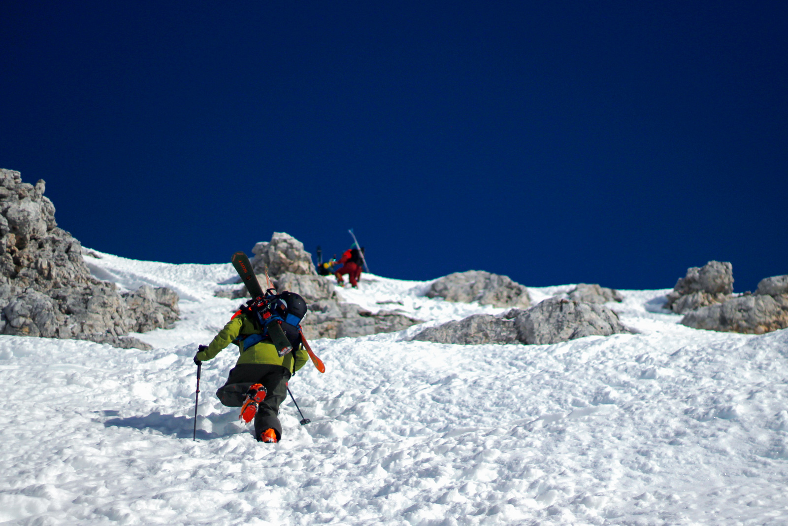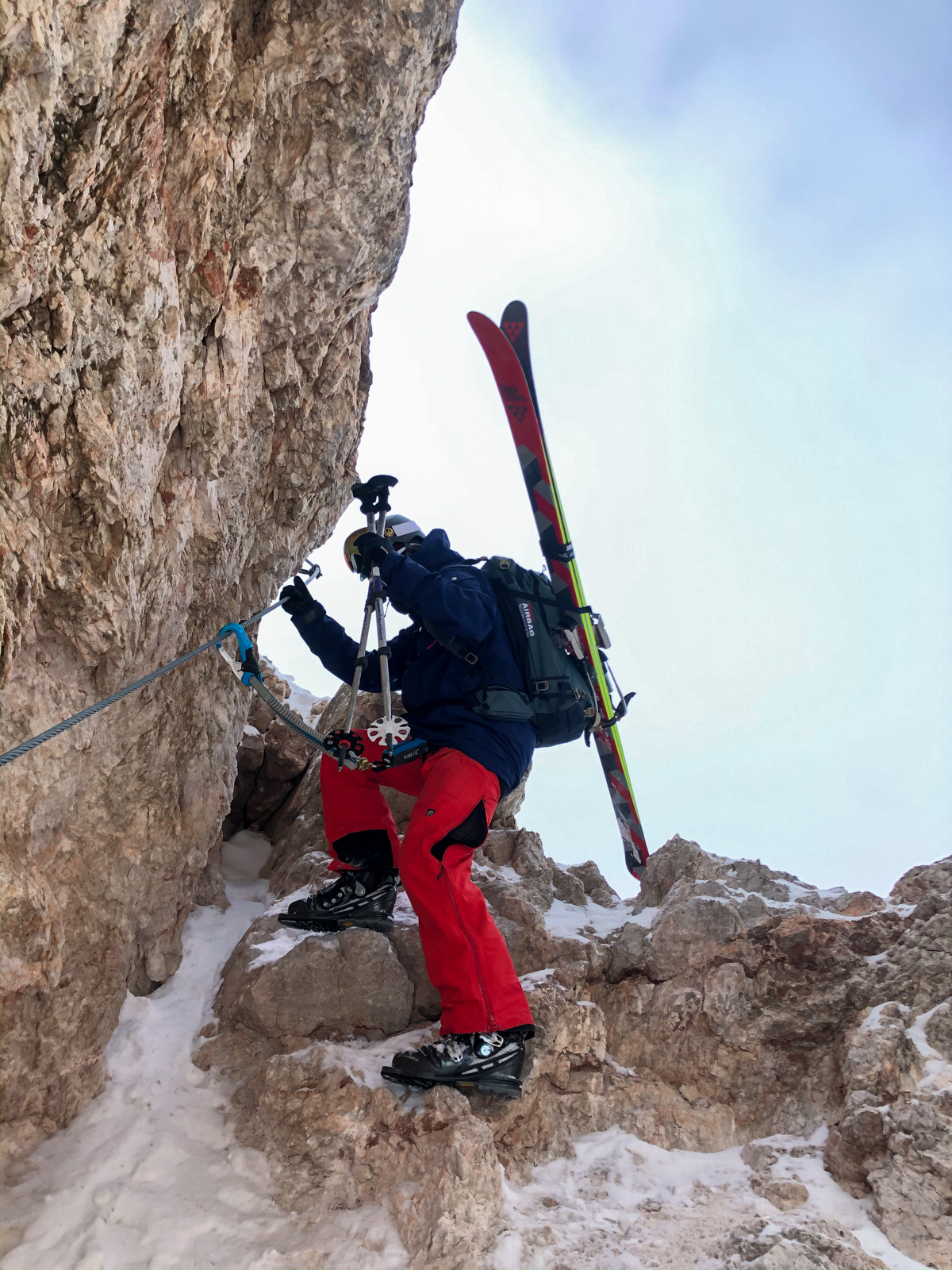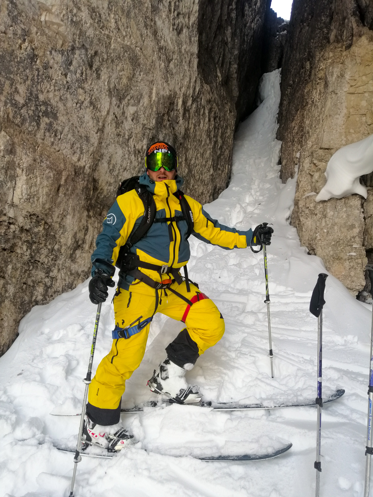 Malgré des conditions d’enneigement très faibles cet hiver, il les conduit en toute sécurité dans des couloirs habituellement inaccessibles et totalement fous, tant pour les sensations que pour les paysages à couper le souffle! Télémarks aux dos et parfois crampons aux pieds pour grimper sur des parois abruptes, via ferrata, … rider ici ça se mérite!
