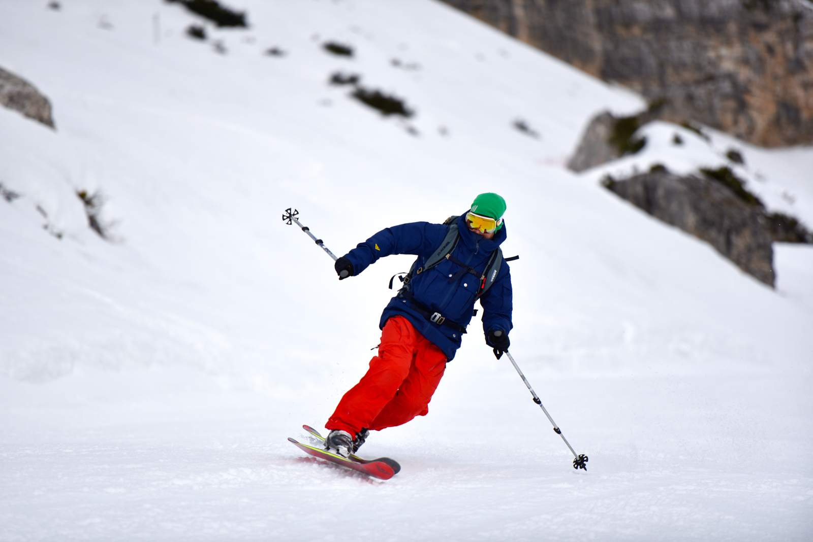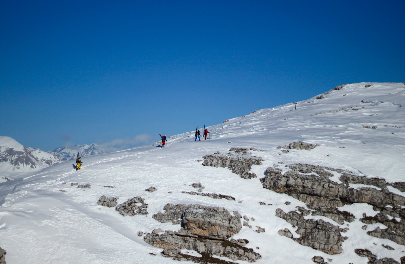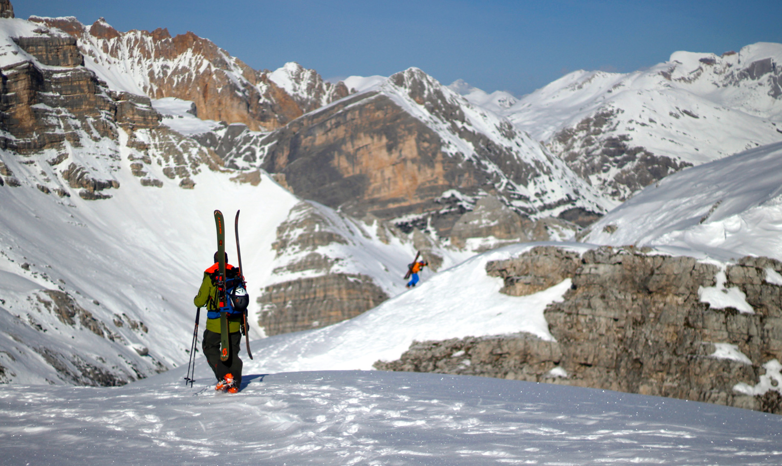 Malgré des conditions d’enneigement très faibles cet hiver, il les conduit en toute sécurité dans des couloirs habituellement inaccessibles et totalement fous, tant pour les sensations que pour les paysages à couper le souffle! Télémarks aux dos et parfois crampons aux pieds pour grimper sur des parois abruptes, via ferrata, … rider ici ça se mérite!
