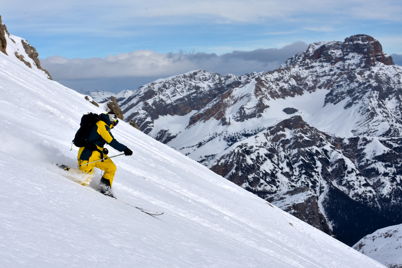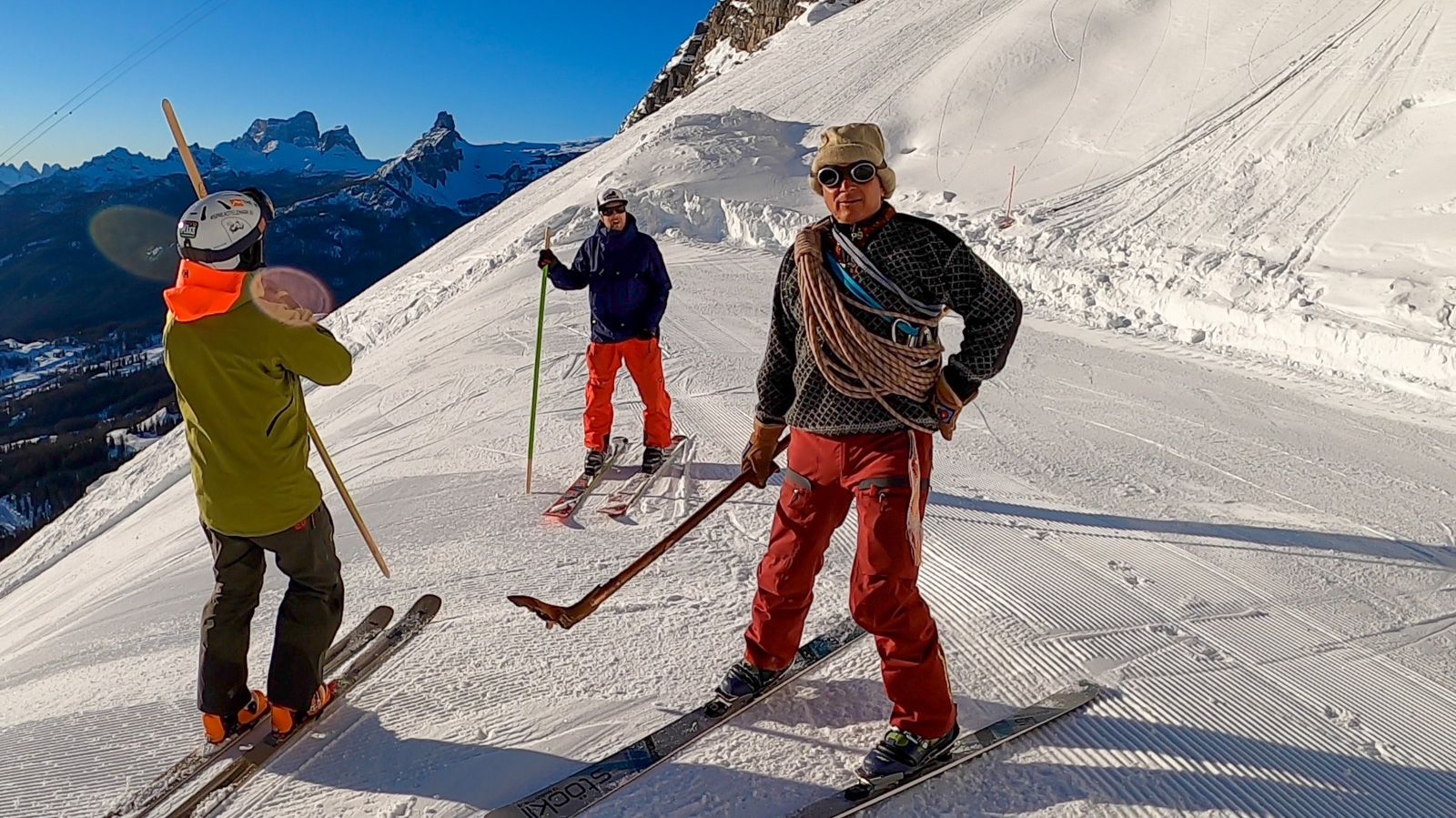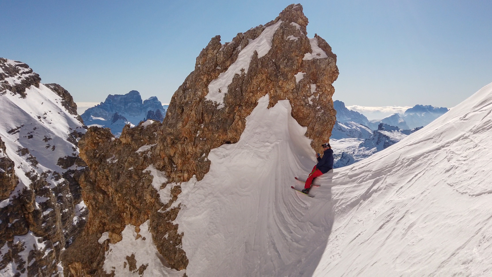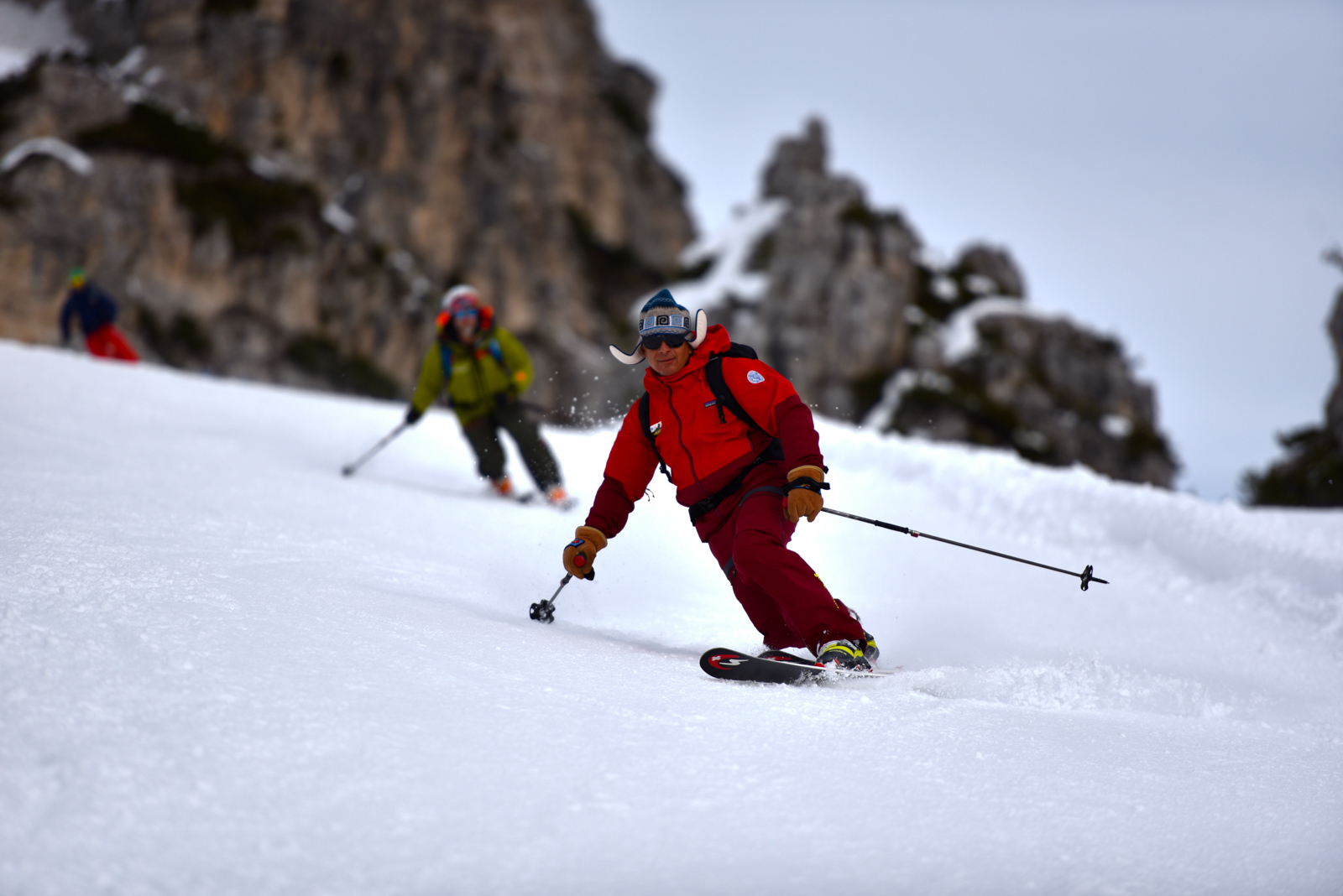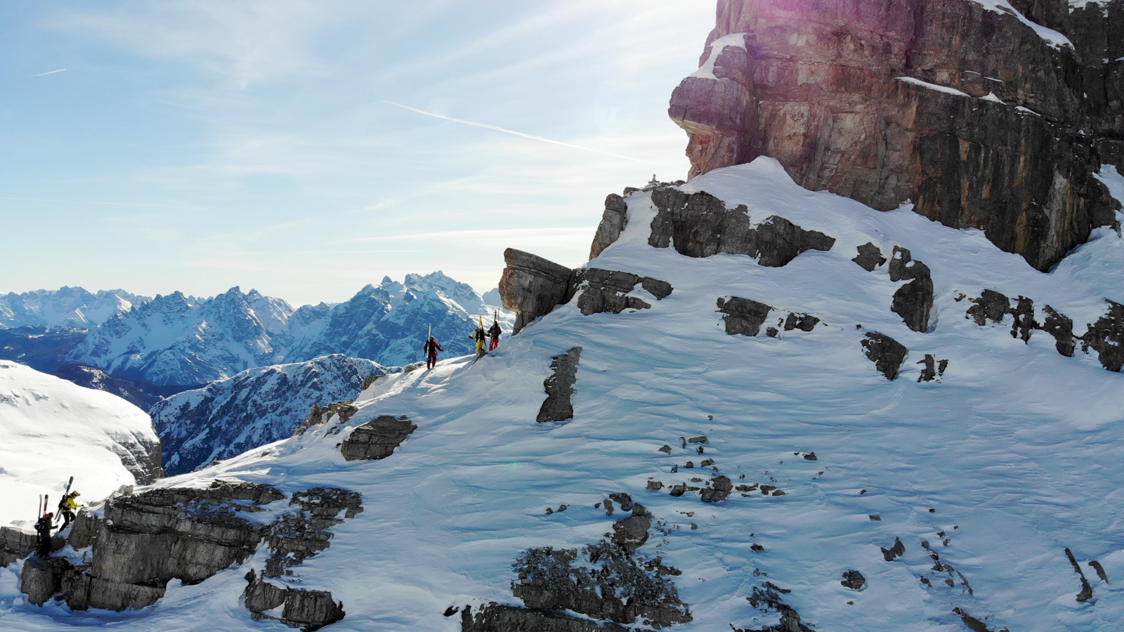 Nouvelle saison, nouveau voyage. Cette année c’est en Italie, dans les Dolomites à Cortina d’Ampezzo que 75mm Production emmène son équipe et ses amis du Telemark Club Dents du Midi, et du Team de la Cuisse Chaude! Cerise sur le gâteau, Paolo Tassi, guide et télémarkeur de premier ordre les accompagne pour leur faire découvrir des coins insoupçonnés de sa région.